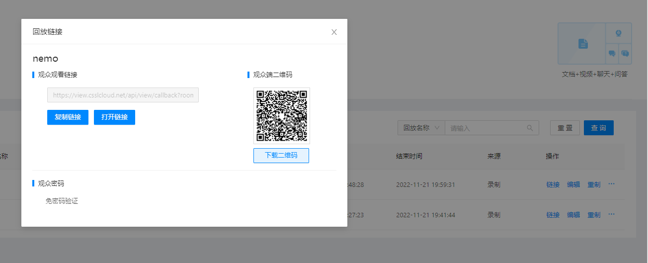 2.支持查看单个直播间或单个直播的回放记录